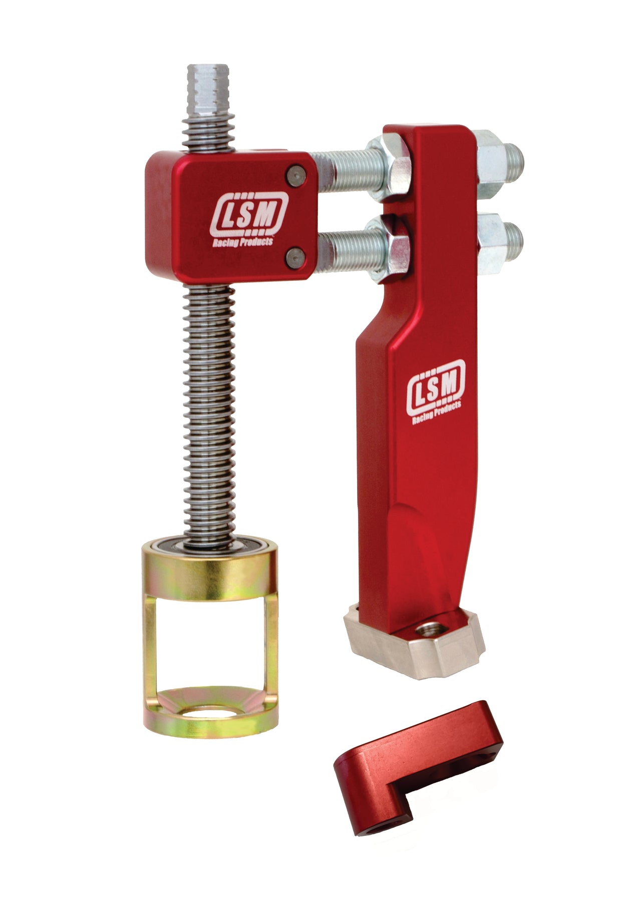 The LSM SC-200™ is our valve spring compressor for conventional big blocks with individually mounted shaft rockers. The SC-200™ Slotted Steel Base works with 5/16" bolts or studs and 1.40" - 1.70" center line spacing. Remove your rocker and mount our tool right on the stand! The rectangular base uses four points of contact to securely mount over the shaft saddle.